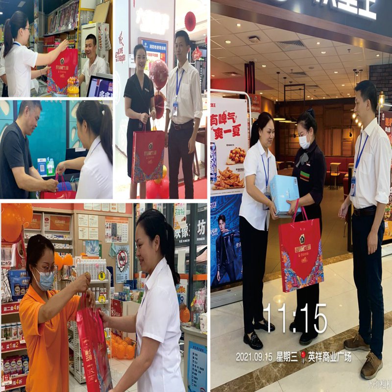 青白江英祥商业广场商管人员为商家送上中秋礼品